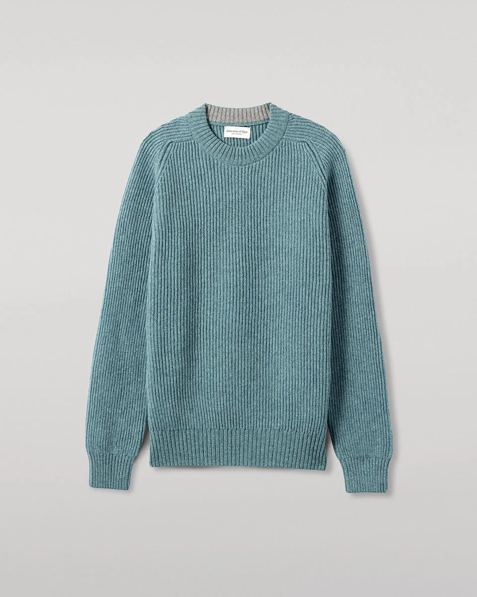 A modern take on a classic, the Seascape & Light Grey Cashmere Ribbed Crew Neck Jumper features a relaxed fit and timeless crew neckline. Knitted in a full cardigan stitch, it delivers rich texture and warmth with a nod to traditional fisherman style. Finished with a subtle contrast detail at the inner neck, it’s an effortlessly refined layer for cooler days. PRODUCT DETAILS 100% Cashmere 4 Ply: Four individual strands are twisted to create this yarn, producing a durable, light-mid knit. Model is 6ft2 and wear a size M Made in Scotland Code: KAA05270