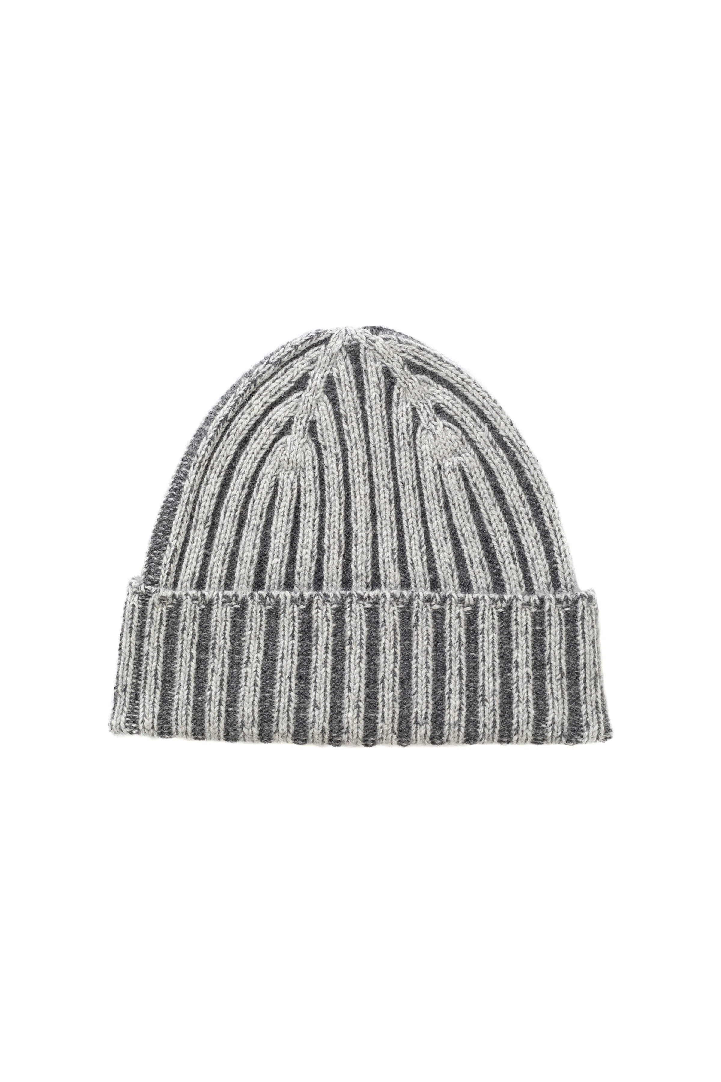 Our grey ribbed Donegal cashmere hat. Made from the finest cashmere, this beanie offers unparalleled softness and warmth. With its classic rib design, it is both timeless and functional, making it the perfect cold weather accessory. The Finer Details: - Donegal Cashmere Rib Grey Beanie - 100% Cashmere 3 Ply: Three individual strands are twisted to create this yarn, producing a durable, lightweight knit. - Pale Grey Donegal & Mid Grey - One Size - Hand Wash - Free Worldwide Delivery