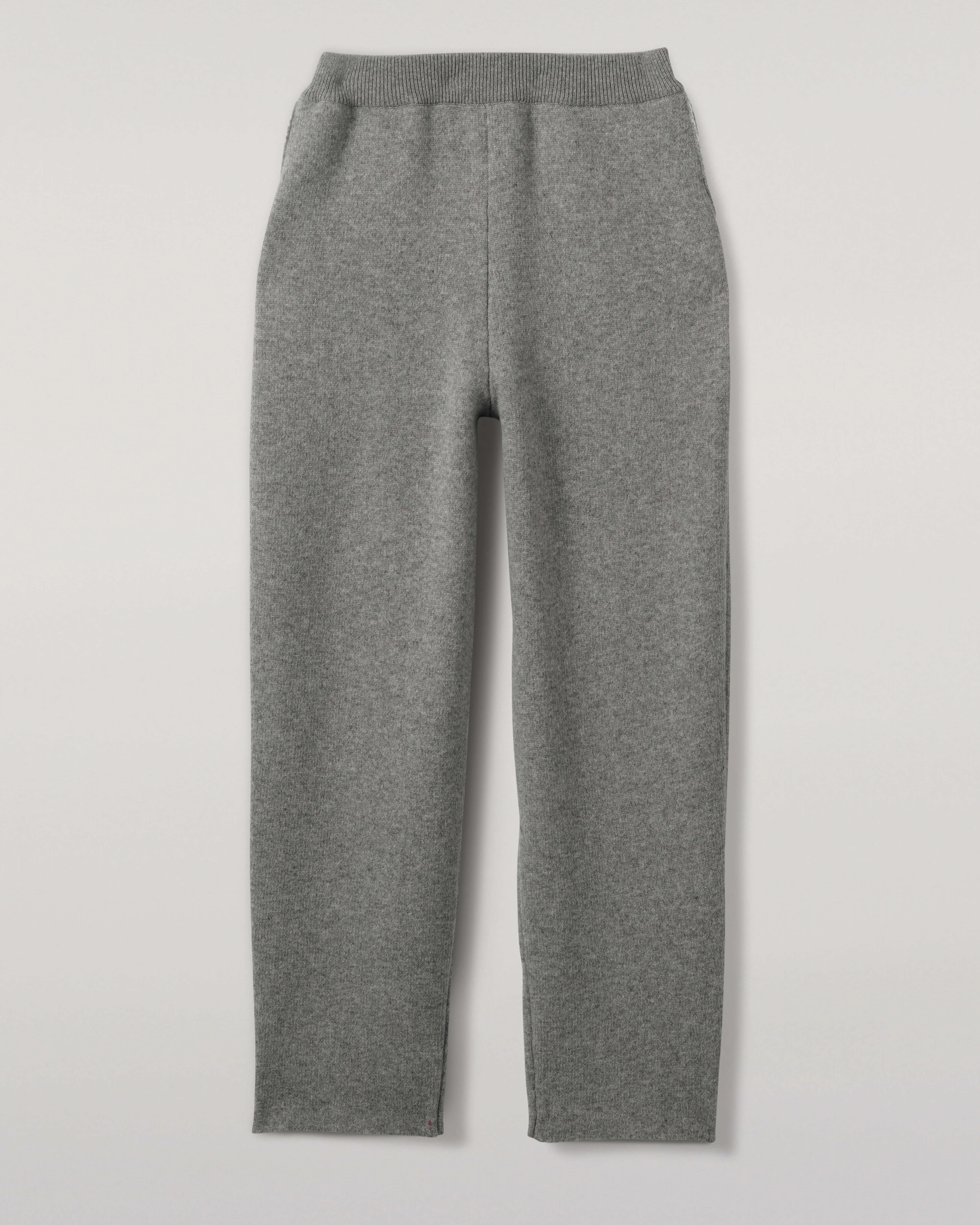 Joggers in a double-face knit, featuring an outer layer of cashmere and an inner merino lining. Sporty and soft. PRODUCT DETAILS 55% Cashmere 35% Merino Wool 10% Elastane 4 Ply: Four individual strands are twisted to create this yarn, producing a durable, light-mid knit. Model is 6ft2 and wear a size M Made in Scotland Code: KBA01024