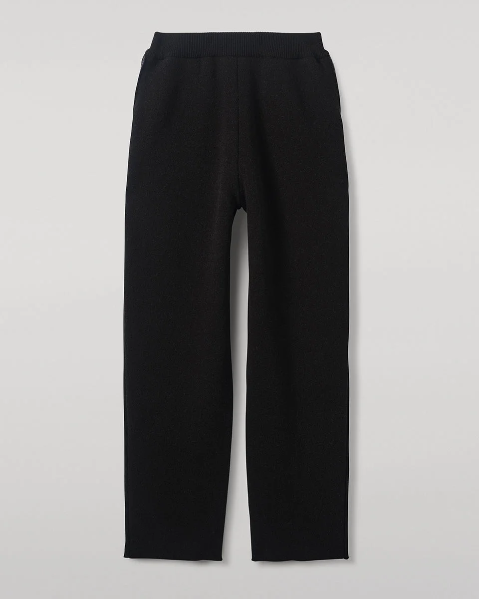 Joggers in a double-face knit, featuring an outer layer of cashmere and an inner merino lining. Sporty and soft. PRODUCT DETAILS 55% Cashmere 35% Merino Wool 10% Elastane 4 Ply: Four individual strands are twisted to create this yarn, producing a durable, light-mid knit. Model is 6ft2 and wear a size M Made in Scotland Code: KBA01024