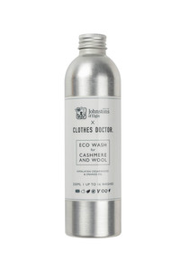 Johnstons of Elgin X Clothes Doctor Gentle pH neutral detergent collaboration: Our expertly formulated Cashmere Shampoo uses a gentle and softening formula that extends the life of your knitwear. It is lightly scented with Himalayan cedarwood and orange oil, to provide natural moth defence. The perfect alternative to dry cleaning. Packaged in a plastic free, infinitely recyclable bottle. PRODUCT DETAILS Packaged in 100% aluminium with a compostable label. 250ml / Up to 16 washes Code: MM00016