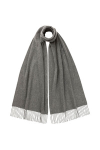 Our mid grey cashmere scarf is a must-have addition to any wardrobe. Renowned for its exceptional softness and warmth, this timeless piece features a unique ripple hand finish, crafted with natural, hand-worked teasels. PRODUCT DETAILS 100% Cashmere 180x25cm | 71x10" Made in Scotland Code: WA000016