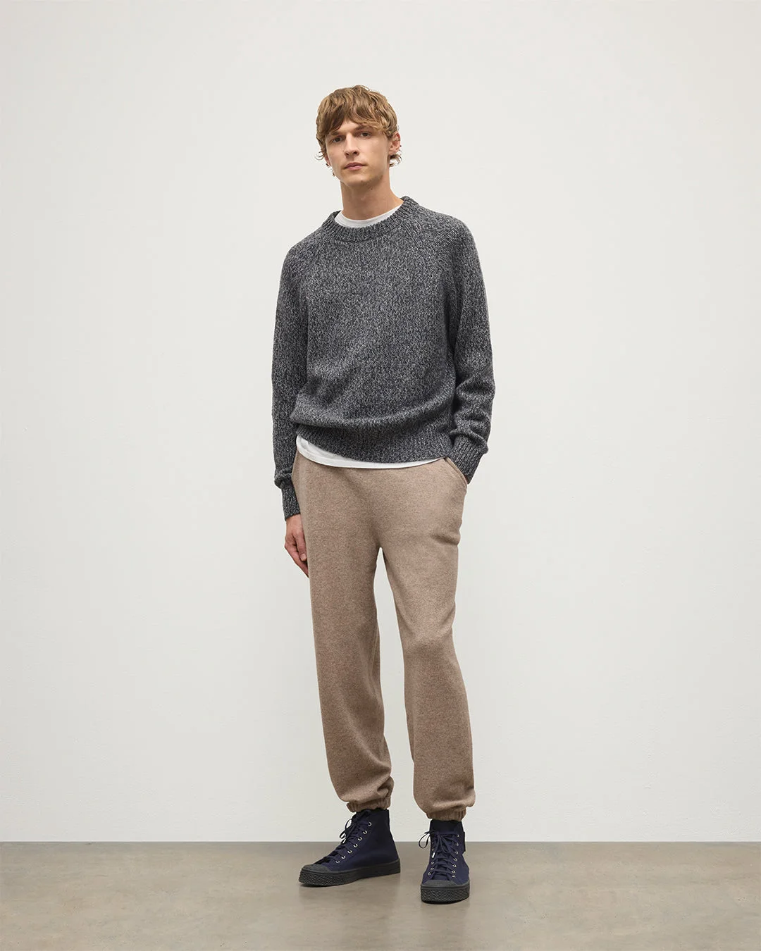 Designed for comfort with a clean, modern silhouette. Featuring front and back pockets, elasticated cuffs, and a relaxed fit. PRODUCT DETAILS 97% Cashmere 3% Polyester in Ash 2 Ply: Two individual strands are twisted to create this yarn, producing a durable, lightweight knit. Model is 6ft1 / 187cm and wears a size M Made in Scotland Code: KBP00948