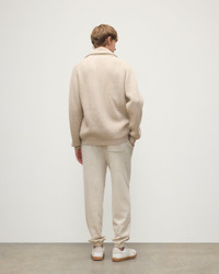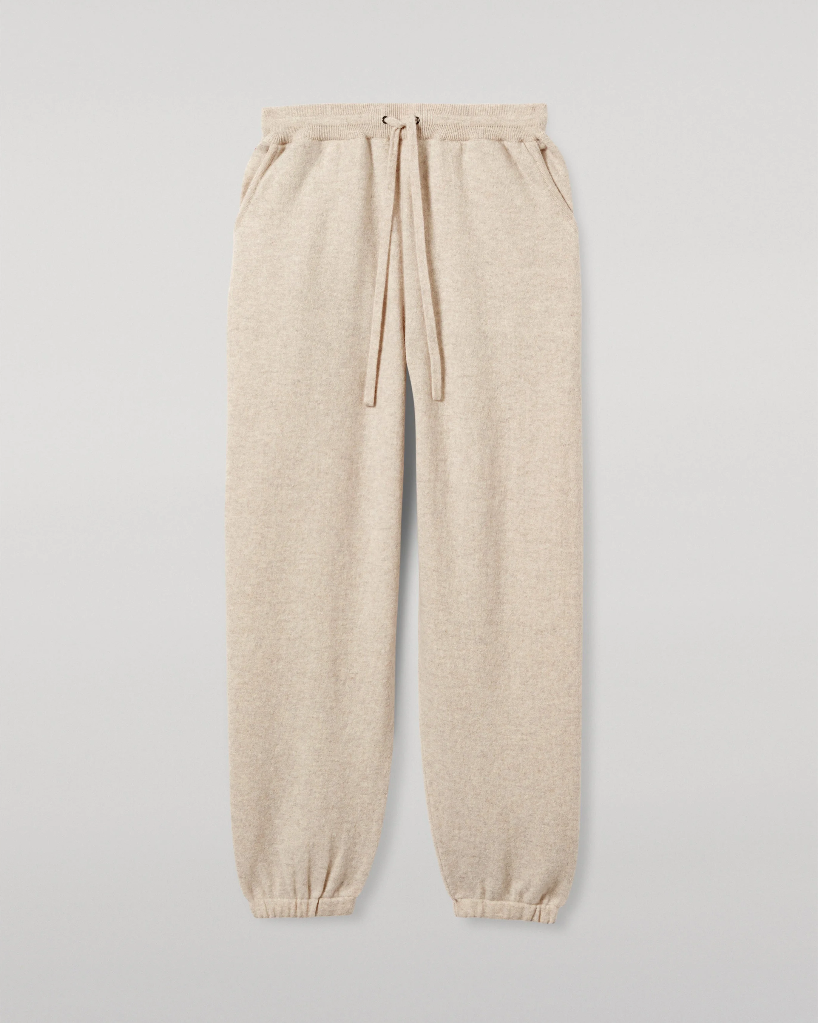 Designed for comfort with a clean, modern silhouette. Featuring front and back pockets, elasticated cuffs, and a relaxed fit. PRODUCT DETAILS 97% Cashmere 3% Polyester in Lunan Sand 2 Ply: Two individual strands are twisted to create this yarn, producing a durable, lightweight knit. Back Pocket Model is 6ft1 / 187cm and wears a size M Made in Scotland Code: KBP00948