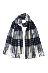 Whether you're dressing up for a formal event or need an extra layer for chilly days, this versatile navy and cream cashmere shawl in Knockmore tartan is sure to keep you stylish and warm. PRODUCT DETAILS 100% Cashmere 190x70cm | 75x28" Made in Scotland Code: WA000056