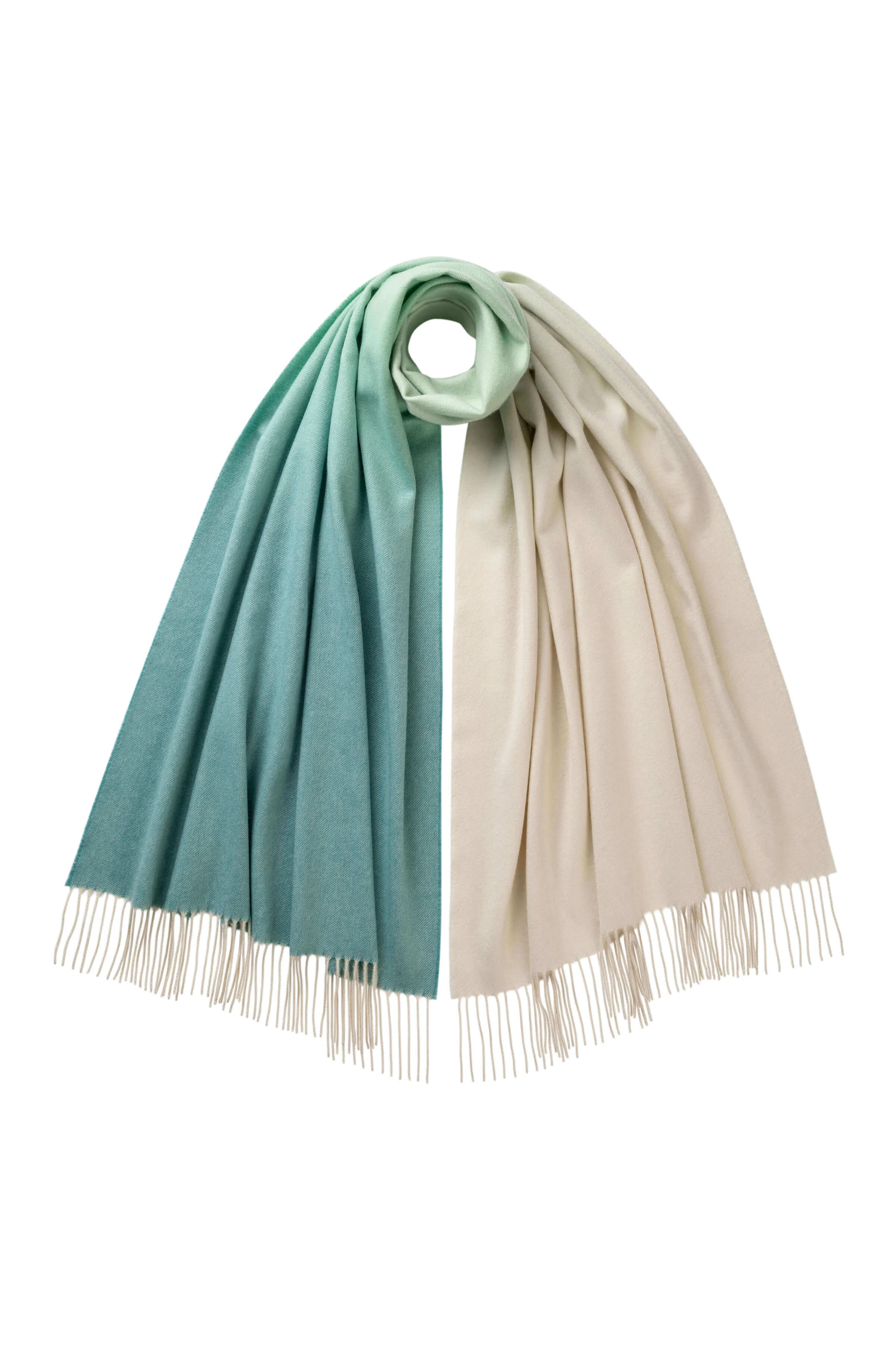 Jade green transitions to soft white in our ombre cashmere stole. We make our iconic Ombre pieces from start to finish in our own mills. We produce and dye our own yarn and blend numerous colours to achieve our signature ombre shades. The Finer Details: - Ombre Cashmere Stole - 100% Cashmere - Green & White - 190x70cm | 75x28" - Personalisation Available - Dry Clean - Free Worldwide Delivery