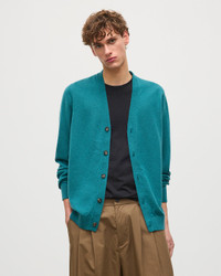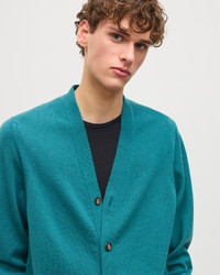 A relaxed, easy fit makes the Rory V-Neck Cardigan a perfect year-round layering piece, styled over a shirt or tee, with denim for a laid-back look, or underpinning refined tailoring. Crafted in our Hawick Mill, the cardigan is made from 2-ply yarns of 100% cashmere in Verdigris Green. Soft, tactile and lightweight, with five buttons to the front. PRODUCT DETAILS • Regular Fit • 100% Cashmere • Verdigris Green • Five Button Design • Made In Scotland • Model is 6ft1 / 187cm and wears a M • KAP05576