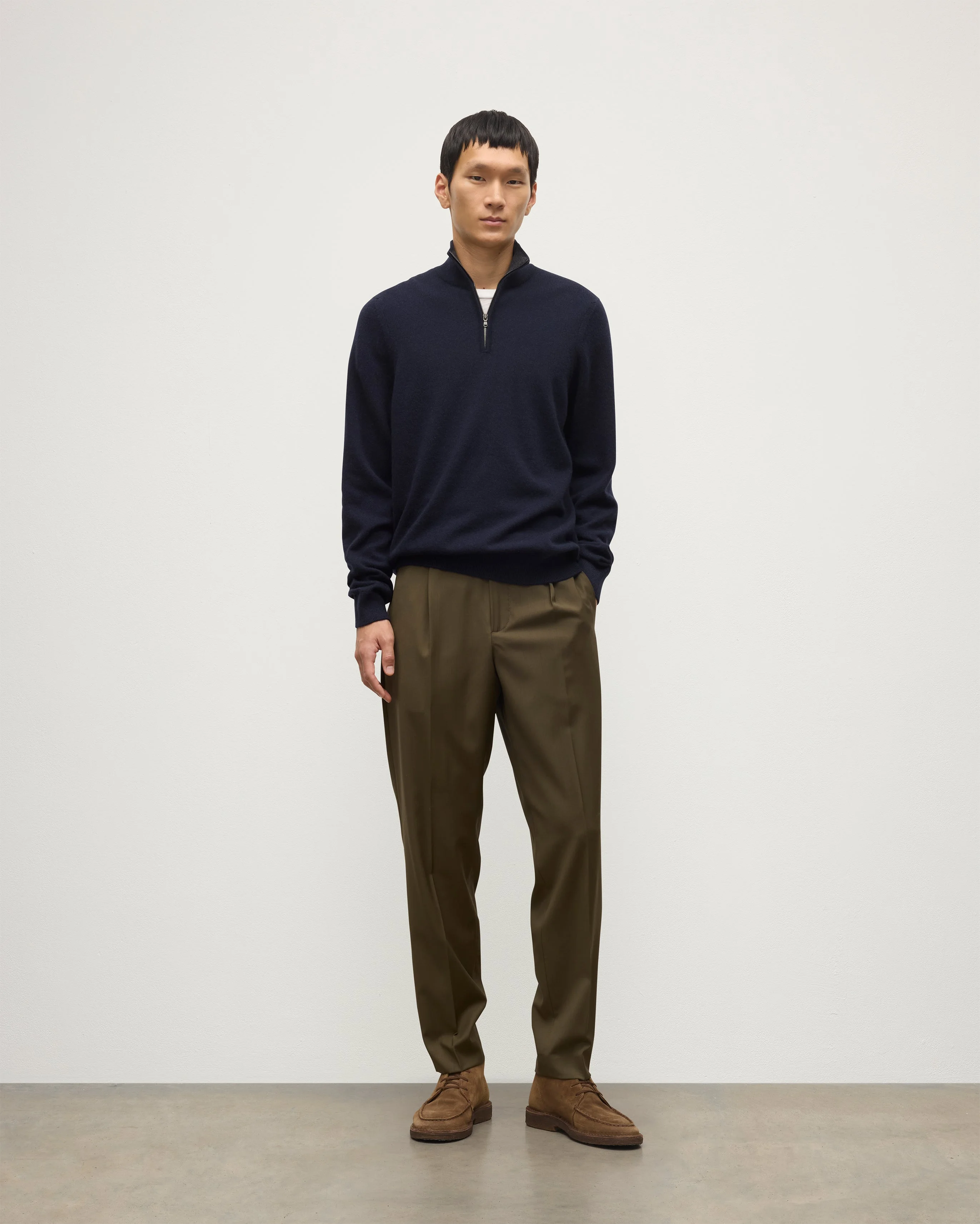 A relaxed, easy fit makes the Rory ½ zip a perfect year-round layering piece. Crafted from soft, tactile cashmere this style works perfectly with a tailored pant and shirt for a classic chic look or equally well with denim for a laid-back everyday staple. PRODUCT DETAILS 100% Cashmere in 2 Ply: Two individual strands are twisted to create this yarn, producing a durable, lightweight knit. Model is 6ft1 / 187cm and wears a size M Made in Scotland Code: KAP05577