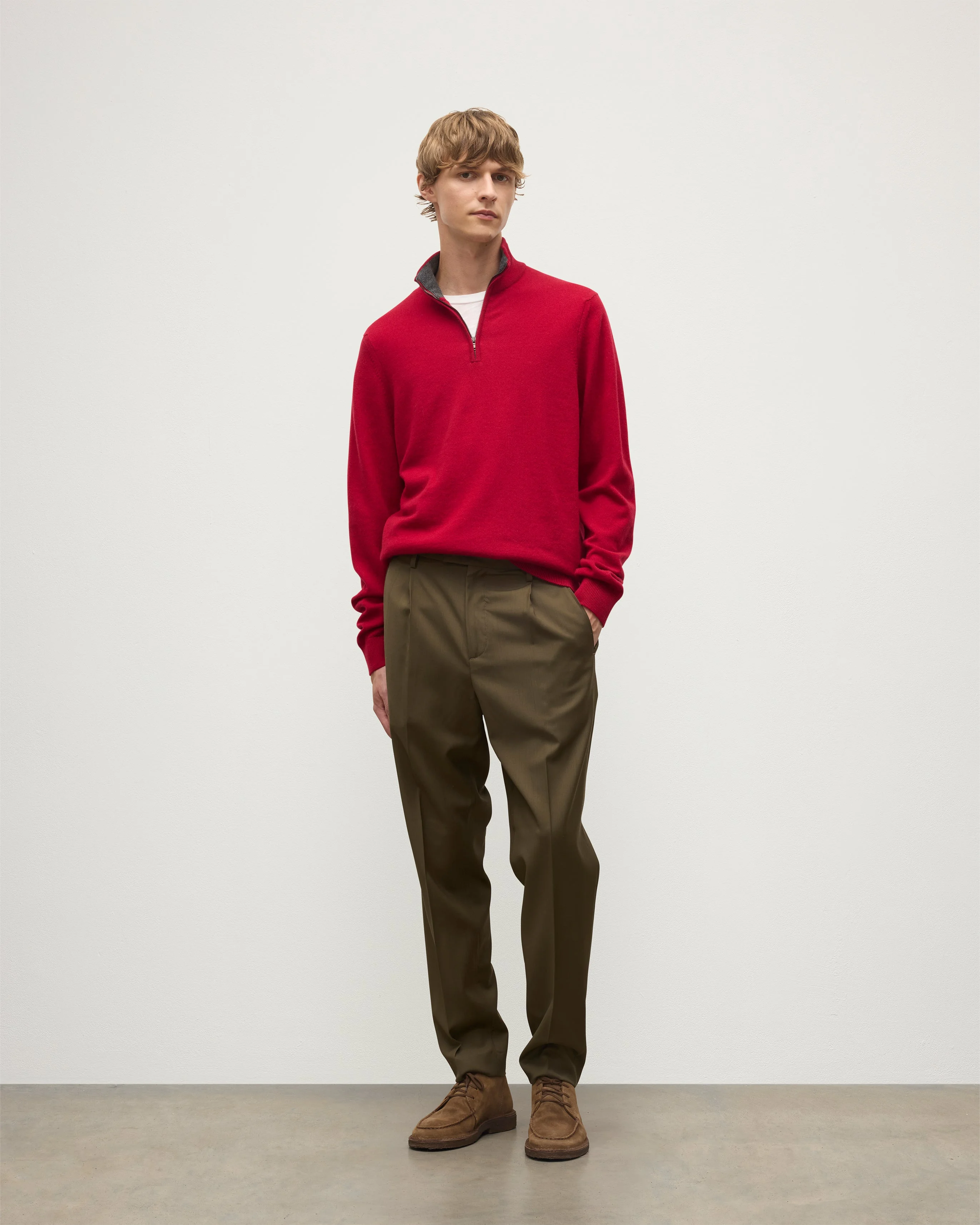 Rory Red & Grey Classic Cashmere Contrast Zip Neck Jumper