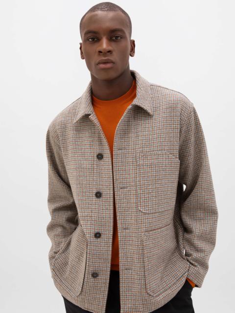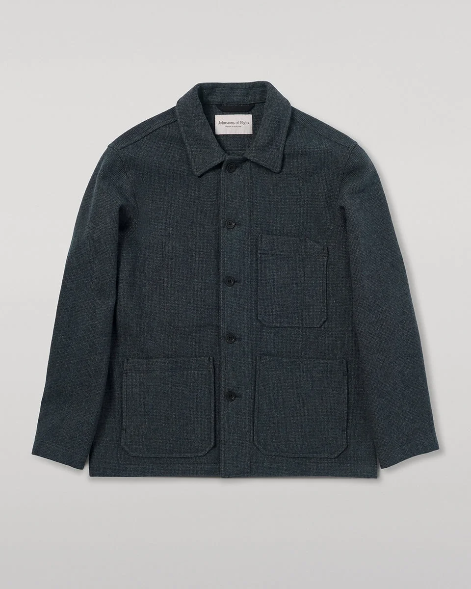 As makers, we are delighted to share this mastery of fabric. A traditional workwear inspired piece with a simple unlined construction. Features a pocket for scissors and a little slot for essential weaving tools - a heddle hook and a dropper. The main outer pockets have double entry, side entry and top entry leading into separate compartments, lined with hardwearing cotton cloth and reinforced with substantial bar tacks. The breast pocket is split for convenience while two internal pockets can house more personal belongings. The Weavers Jacket has dropped shoulders for a soft, relaxed fit, and a silhouette that finishes at the hip. Melange wool offers depth of colour, strengthened for durability by twisting worsted wool around it. This has the same base fabric as our Tweed Jacket but the unlined construction of the Weavers Jacket allows for a less formal aesthetic. Boasts a navy herringbone pattern inspired by our own archives. PRODUCT DETAILS 100% Wool Model is 6ft2 and wear a size 40 Made in Scotland Code: TD000429