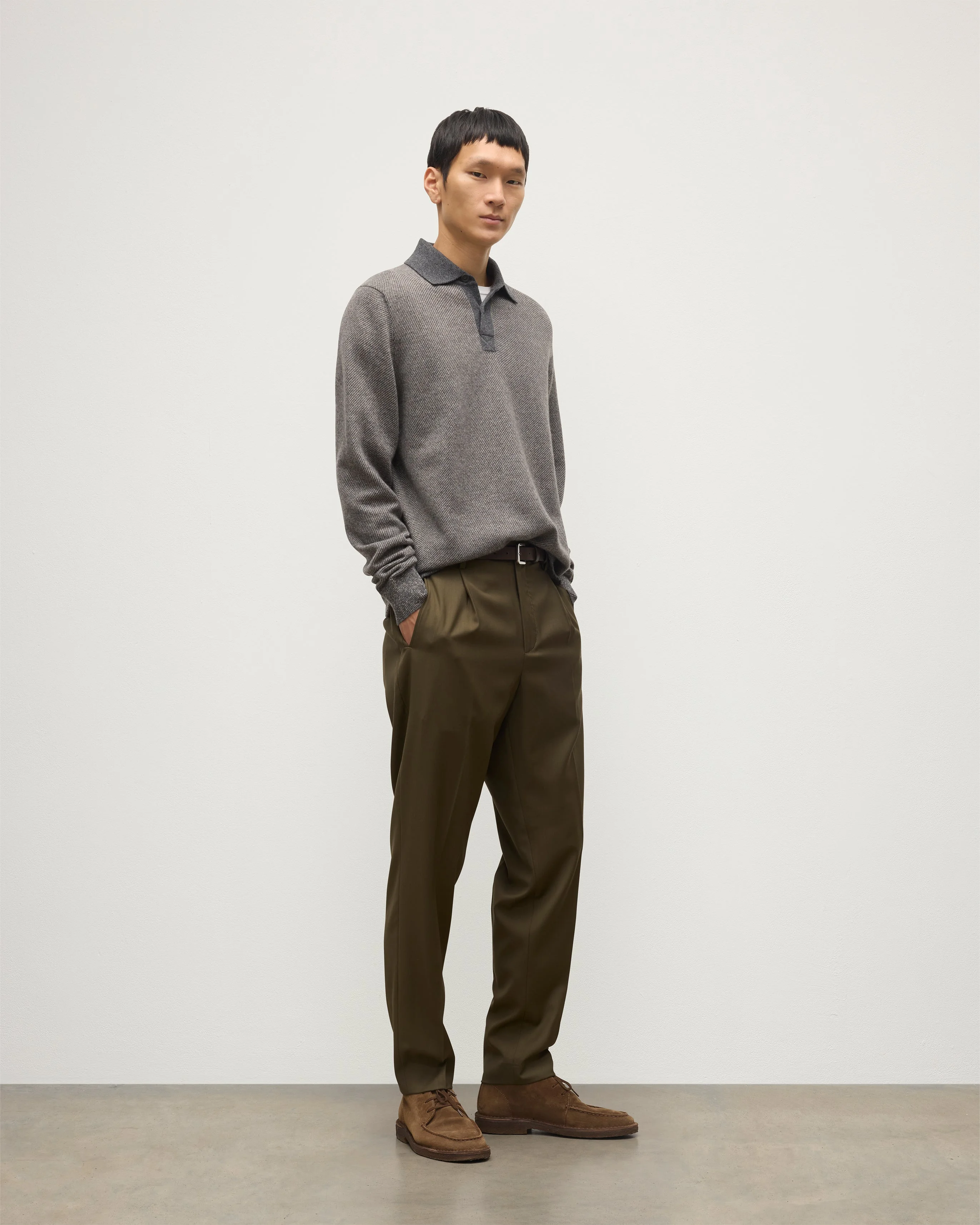 A sophisticated new interpretation of the classic rugby shirt beautifully engineered in our new two-tone ‘Tweel’, a term rooted in the original Scottish name for Twill. This unique knit pays homage to our weaving heritage, subtly echoing the diagonal structure of traditional ‘tweel’. Details include integrally knitted placket, fully fashioned collar with stand and micro side slits for a sophisticated sportswear look. PRODUCT DETAILS 100% Cashmere in 2 Ply: Two individual strands are twisted to create this yarn, producing a durable, lightweight knit. Model is 6ft1 / 187cm and wears a size M Made in Scotland Code: KAP05727