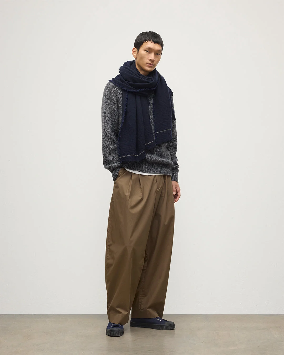 Minimalist and versatile, the Usan scarf is woven in semi-plain cashmere for subtle texture. An understated essential, it offers enduring comfort and quiet luxury. PRODUCT DETAILS 100% Cashmere Navy 200x134cm | 78.5x52.5" Made in Scotland Code: WA002476