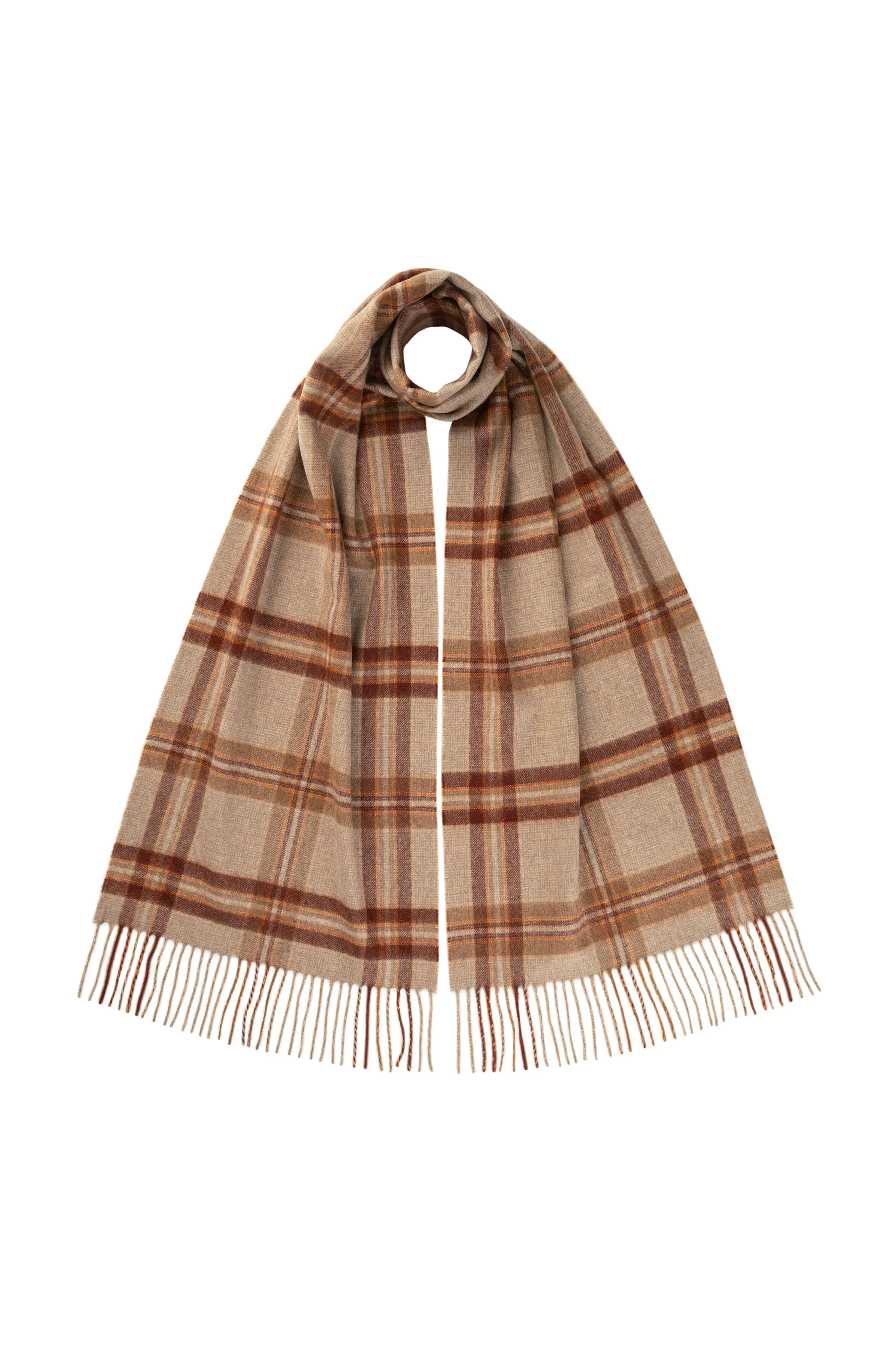 A heritage pattern featuring seasonal russet on a soft natural base shade, reflecting our tweed expertise. Incredibly soft and tactile. W arm and lustrous, this timeless design showcases our unique ripple hand finish, achieved using natural, hand-worked teasels. PRODUCT DETAILS 100% Cashmere 190x35cm | 74.8x13.8" Made in Scotland Code: WA000057