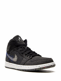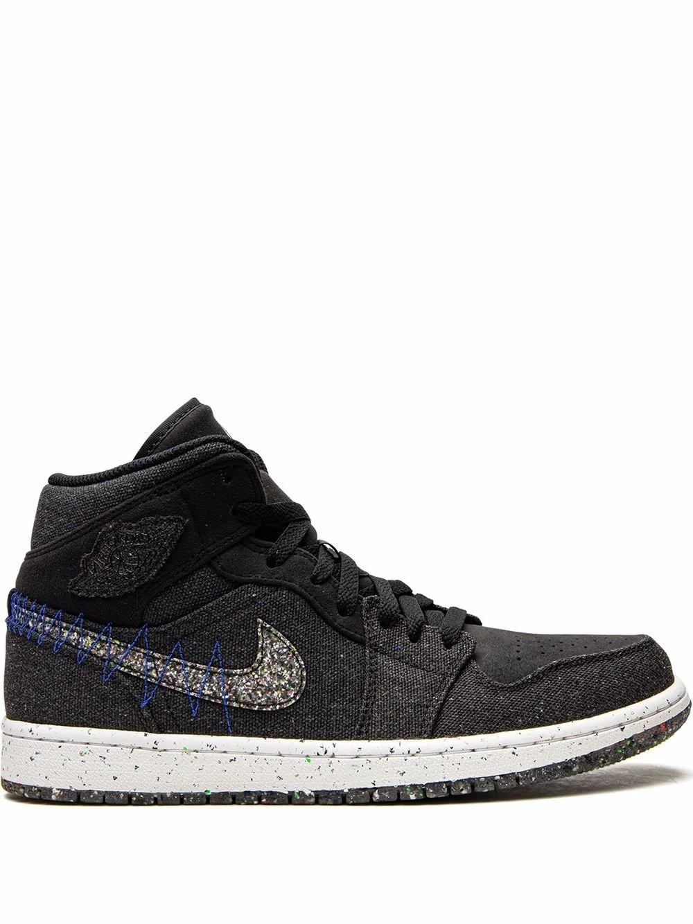 Jordan 1 Mid "Crater Black" sneakers And Jordan strikes again - in a new colourway. These full-black Air Jordan 1 Mid sneakers come with a contrasting Swoosh and a toe cap and tongue in black. All the details are on the collar and heel, with an Air Jordan Wings logo on the side and a Jumpman logo on the tongue. Highlights - Black - Signature swoosh logo detail - Signature air jordan wings logo - Round toe - Front lace-up fastening - Logo patch at the tongue - Ankle-length - Branded insole - Rubber sole - These styles are supplied by a premium sneaker marketplace. stocking only the most sought-after footwear, they source and curate some of the most hard to find sneakers from around the world. Imported Composition Outer: Polyester 100% Sole: Rubber 100%