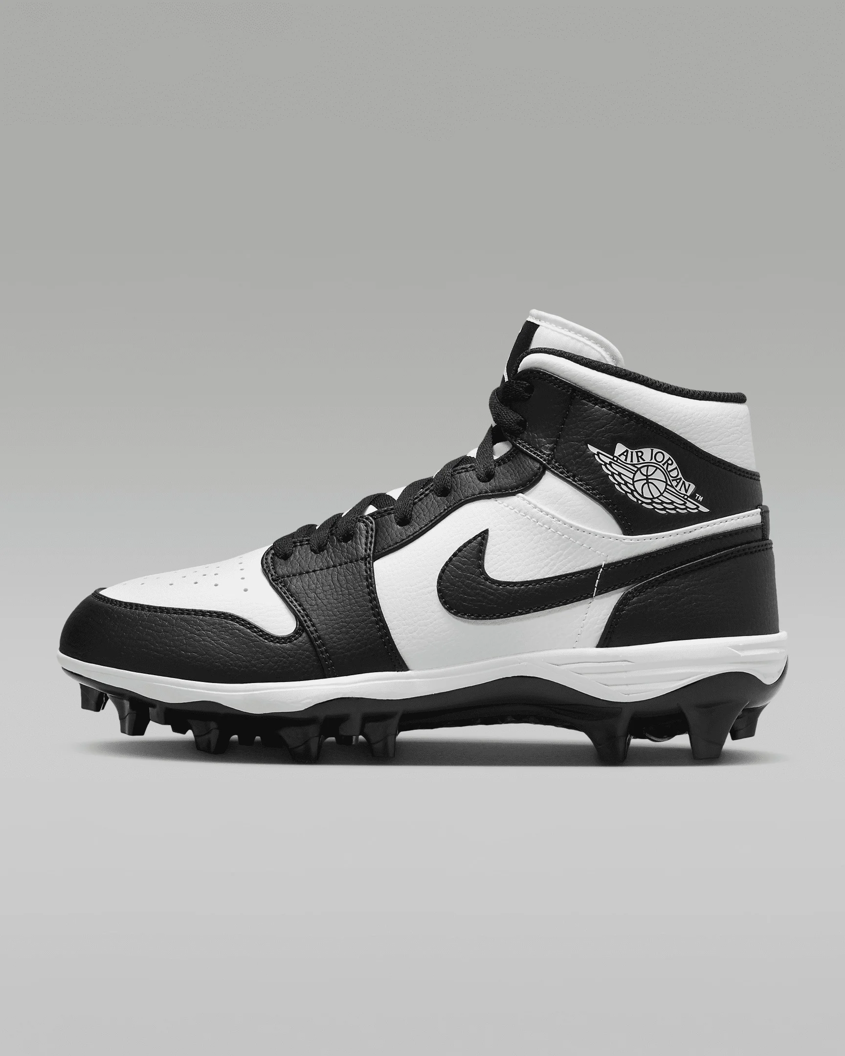 Engineered for speed, the Jordan 1 Mid TD offers a new degree of agility and quickness. Its wide stud placements help you cut faster than ever before. And the durable design is backed by synthetic leather details in the upper that help resist abrasion. Benefits - Upper takes the best parts of the AJ1 and reimagines the silhouette for a football cleat. - Wide stud placement helps you make quick cuts on the field. - External midsole provides extra comfort. Product Details - Shown: White/Black/Black - Style: FJ6805-100
