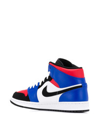 Air Jordan 1 Mid "Top 3" sneakers Name a more iconic silhouette than Jordan 1 high-top sneakers. While we wait for your answer, take one look at this red, white and blue pair. Can't think? We thought so. Highlights - Cobalt blue - Leather - Round toe - Flat rubber sole - Front lace-up fastening - Signature swoosh logo detail - Ankle-length - These styles are supplied by a premium sneaker marketplace. stocking only the most sought-after footwear, they source and curate some of the most hard to find sneakers from around the world. Imported Composition Calf Leather 100% SIZE & FIT Measurement HEEL 1.18 in(3 cm) Sole height 0.78 in(2 cm) HEIGHT 4.33 in(11 cm)