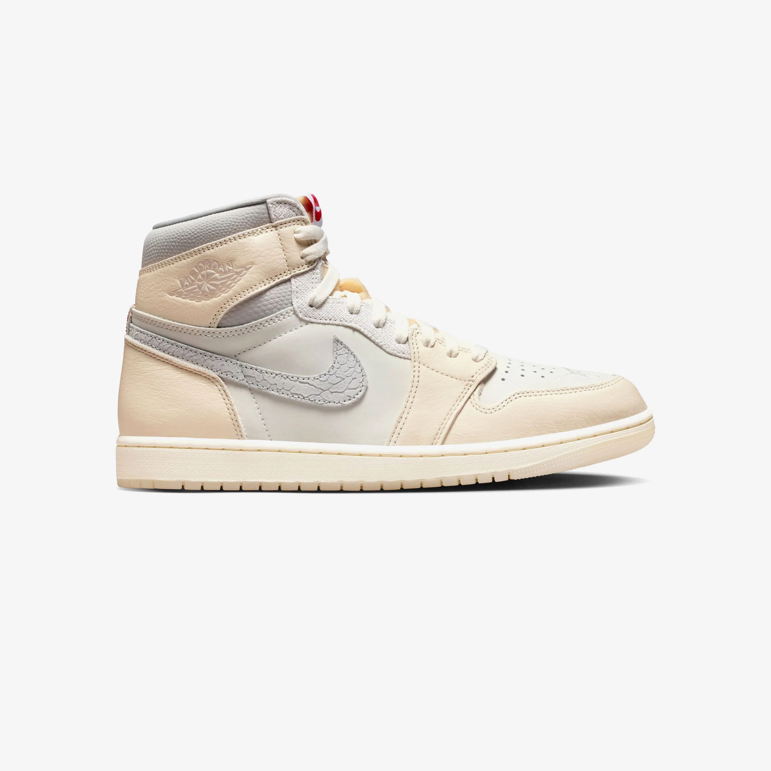The Air Jordan 1 Retro High OG returns with a crisp white base, accented by an elephant-textured Swoosh and subtle Uni Red detailing. Premium leather panels provide structure and depth, while a removable shroud adds versatility. Cushioned support and responsive comfort make every step effortless, honoring the silhouette’s legendary status. - Air Jordan 1 Retro High OG - Layered leather upper for structure and durability - Elephant-textured Swoosh and Uni Red accents for distinctive detailing - Removable shroud for adaptable styling - Cushioned midsole for responsive comfort - Foam underfoot support for stability - Rubber outsole for traction and long-lasting wear Article no: IH4363-100 Gender: Men Color: SAIL/UNIVERSITY RED-PALE IVORY