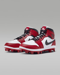 Bringing the iconic design of the Air Jordan 1 to the ballpark, the Jordan 1 Retro MCS has a molded outsole for traction that digs in, while its durable upper delivers a supportive fit. Benefits - Synthetic leather upper provides durable comfort and support. - Foam midsole delivers lightweight cushioning around the bases. - Cleated TPU plate offers lightweight, durable traction. - An Air Jordan Wings logo on the upper brings basketball details to the diamond. Product Details - Shown: Gym Red/White/Black - Style: AV5354-611