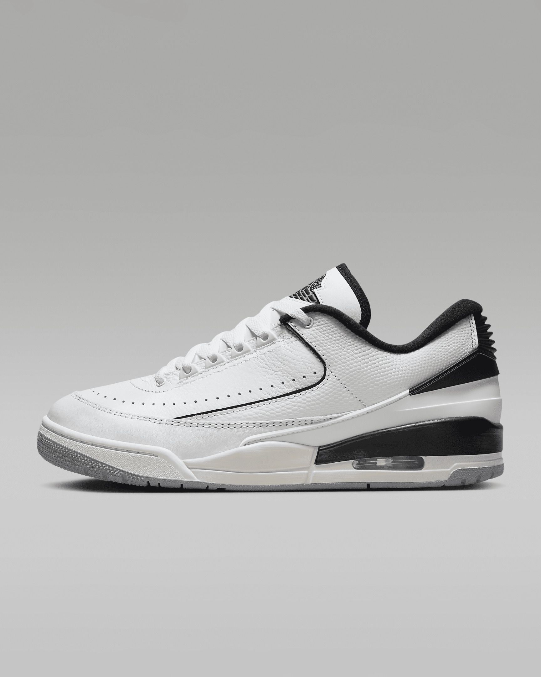 What happens when you take unmistakable features from the AJ2 and AJ3, then combine them in a single shoe? You stroll through everyday with cool sophistication, that's what. The Jordan 2/3 takes the AJ3's iconic sole and pairs it with upper elements from the always-fresh AJ2. Premium materials add an extra luxe look. Benefits - Leather in the upper offers durability and structure. - Nike Air in the heel and forefoot provides lightweight cushioning. - Rubber in the outsole gives you everyday traction. Product Details - Shown: White/Sail/Cement Grey/Black - Style: FD0383-100