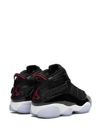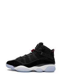 6 Rings "Black/Gym Red/White" sneakers Michael Jordan wore seven different styles of his signature sneaker while winning six NBA championships with the Bulls - the Air Jordan 6 Rings is a tribute to each championship. Popular and easily recognizable, these high-top sneakers boast a black, white and blue colourway with red branded details. Highlights - Black/blue/white - Leather - Patent finish - Signature jumpman motif - Panelled design - Perforated detailing - Round toe - Front lace-up fastening - Branded heel counter - Chunky rubber sole - These styles are supplied by a premium sneaker marketplace. stocking only the most sought-after footwear, they source and curate some of the most hard to find sneakers from around the world. Imported Composition Leather 100%