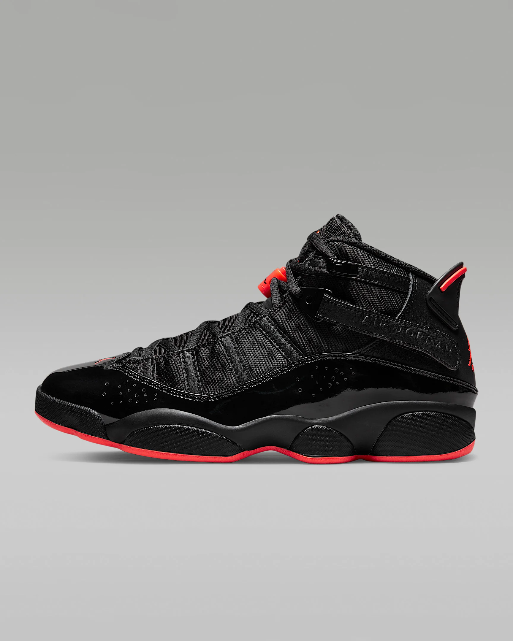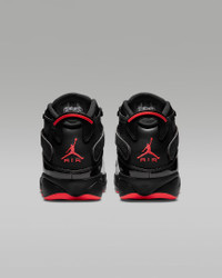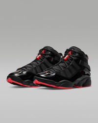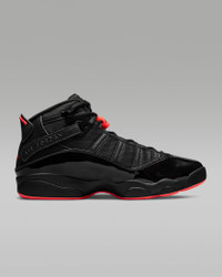 Celebrate the legendary career of "His Airness" with the Jordan 6 Rings. Incorporating key features of each shoe worn during the championship series, it has premium details and lightweight, low-profile Zoom Air cushioning that delivers a responsive feel underfoot. Benefits - Zoom Air units in the heel and forefoot provide lightweight, responsive cushioning. - Leather, synthetic leather and/or textile materials in the upper for comfort and durability. - Foam midsole for stability and lightweight cushioning. - Rubber outsole offers durability and traction. - Heel tab for easy on and off. Product Details - Shown: Black/Black/Infrared 23 - Style: 322992-066 SIZE & FIT Fits small; we recommend ordering a half size up