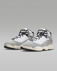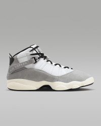 You don't win six championships without some serious skill (and footwear). The design of the Jordan 6 Rings pulls in elements from multiple innovative pairs worn by MJ over the course of his championship seasons. A hidden lacing system streamlines the look, and the toggle lock up top lets you adjust your fit. Benefits - Design elements are inspired by the AJ6, AJ7, AJ8, AJ11, AJ12 and AJ13. - Nike Air unit in the heel delivers lightweight, responsive cushioning. - Hook-and-loop closure at the ankle adds support and easy style customization. - Rubber outsole delivers traction on a variety of surfaces. - Shown: Light Smoke Grey/Black/Sail/White - Style: FJ4650-077