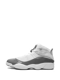 Jordan 6 Rings "White/Cool Grey" sneakers Michael Jordan wore seven different styles of his signature sneaker while winning six NBA championships with the Bulls - the Air Jordan 6 Rings is a tribute to each championship. Popular and easily recognizable, these high-top sneakers boast a white and grey colourway. Highlights - White/grey - Leather - Signature jumpman motif - Panelled design - Pull-tab at the heel - Perforated - Round toe - Front lace-up fastening - Chunky rubber sole - These styles are supplied by a premium sneaker marketplace. stocking only the most sought-after footwear, they source and curate some of the most hard to find sneakers from around the world. Imported Composition Leather 100%
