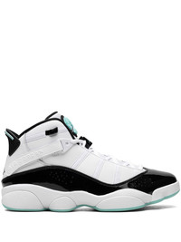 Air Jordan 6 Rings sneakers Michael Jordan wore seven different styles of his signature sneaker while winning six NBA championships with the Bulls - the Air Jordan 6 Rings is a tribute to each championship. Popular and easily recognizable, these high-top sneakers boast a white, black and light blue colourway. Highlights - Black - White - Light blue - Signature jumpman motif - Round toe - Front lace-up fastening - Logo patch at the tongue - Pull-tab at the heel - Branded insole - Rubber sole - These styles are supplied by a premium sneaker marketplace. stocking only the most sought-after footwear, they source and curate some of the most hard to find sneakers from around the world. Imported Composition Leather 100%