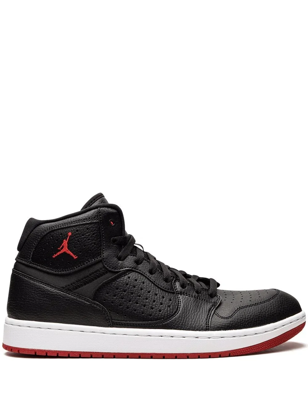 Jordan Access "Bred" sneakers A basketball silhouette, the Jordan Access upper pairs ankle support with breathability thanks to a mid-top design and perforated detailing. This pair is crafted from black leather and punctuated with a red Jumpman motif for a sleek look that catches the eye. Highlights - Black/gym red/white - Leather - Perforated - Panelled design - Signature jumpman motif - Round toe - Front lace-up fastening - Ankle-length - Rubber sole - These styles are supplied by a premium sneaker marketplace. stocking only the most sought-after footwear, they source and curate some of the most hard to find sneakers from around the world. Imported Composition Leather 100%