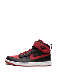 Air Jordan 1 High Flyease "Bred" sneakers Combining the coveted style of Michael Jordan’s first signature sneaker with an easy-access, one-handed entry system, the Air Jordan 1 High FlyEase sneakers boast a wraparound zip design and straps that allow a secure fit. This pair arrives in the iconic “Bred” colourway which pays homage to MJ’s days with the Chicago Bulls. Highlights - Black/red/white - Leather - Signature swoosh logo detail - Signature air jordan wings logo - Signature jumpman motif - Round toe - Front lace-up fastening - Ankle touch-strap fastening - Flat rubber sole - These styles are supplied by a premium sneaker marketplace. stocking only the most sought-after footwear, they source and curate some of the most hard to find sneakers from around the world. Imported Composition Leather 100%