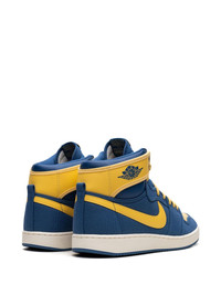 Air Jordan 1 KO "Laney" sneakers The Air Jordan 1 KO ‘Laney’ is a colourway that nods to Michael Jordan’s days at Emsley A. Laney High School. The shoe features a ‘True Blue’ leather base with bold ‘Topaz Gold’ accents atop a ‘Sail’ midsole and blue rubber outsole. The canvas contsruction provides the sneaker with a durable appeal. Highlights - Blue/yellow - Canvas - Faux leather - Pull-tab at the heel - Signature swoosh logo detail - Signature air jordan wings logo - Logo patch at the tongue - Front lace-up fastening - Round toe - Flat rubber sole - These styles are supplied by a premium and authenticated sneaker marketplace. stocking only the most sought-after footwear, they source and curate some of the most hard to find sneakers from around the world. Imported Composition Other fibres 100%