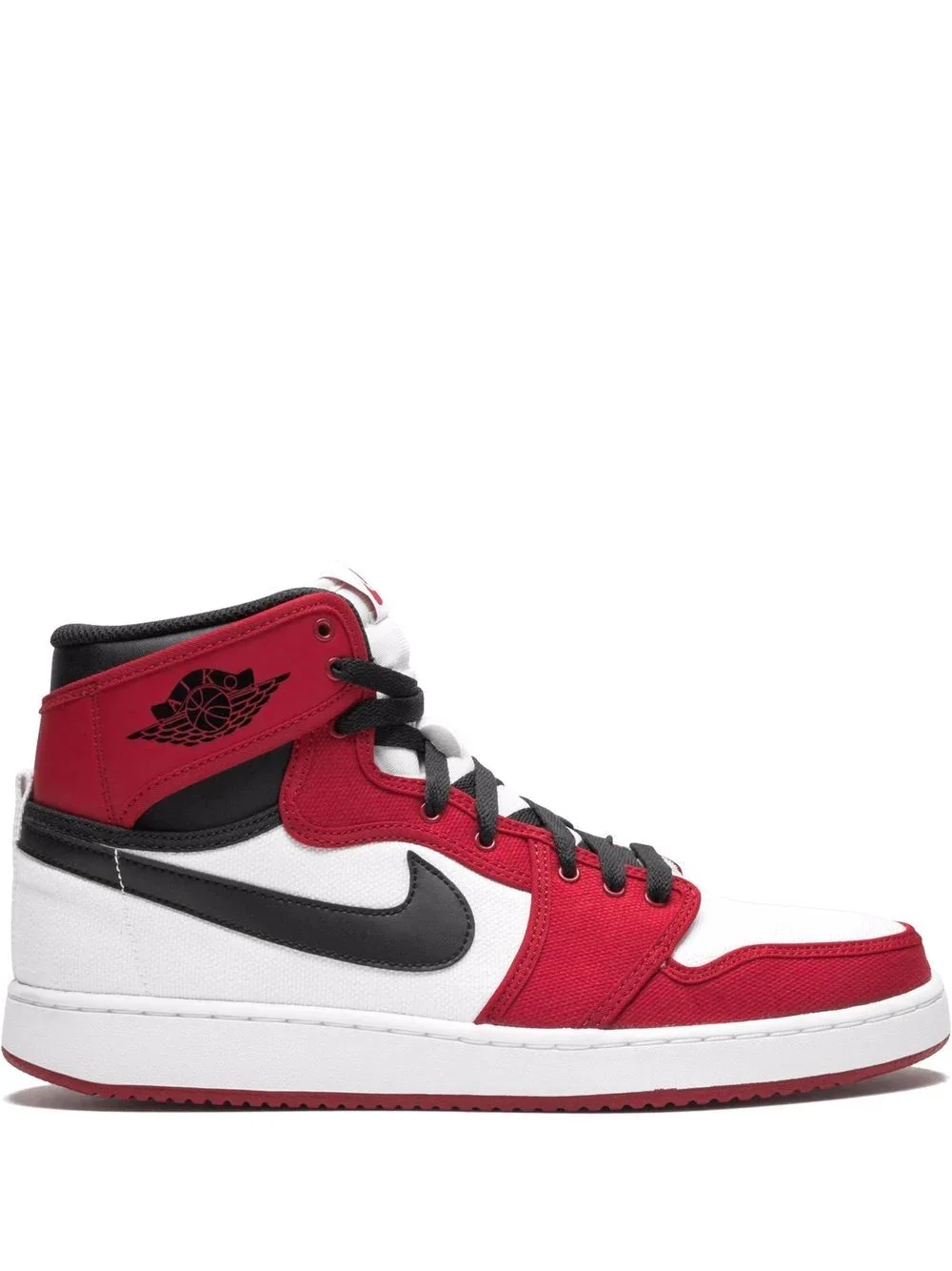 Air Jordan 1 KO sneakers First presented in 1985, Michael Jordan's Air Jordan 1 silhouette has become one of the most prominent winners in sneaker history. Still true today, this high-top pair takes on the nickname 'Chicago', thanks to the black, white and gym red leather upper that the brand is known for. Imported Composition Leather 100%