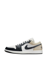 Air Jordan 1 logo-print sneakers Highlights - White - Black panel - Logo print - Lace-up fastening - Rubber sole Imported Composition Sole: Rubber 100% Lining: Fabric 100% Outer: Calf Leather 100%