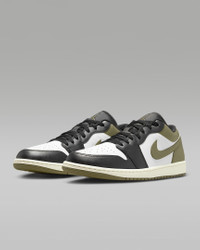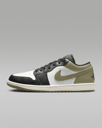 Inspired by the original that debuted in 1985, the Air Jordan 1 Low offers a clean, classic look that's familiar yet always fresh. With an iconic design that pairs perfectly with any 'fit, these kicks ensure you'll always be on point. Benefits - Encapsulated Air-Sole unit provides lightweight cushioning. - Genuine leather in the upper offers durability and a premium look. - Solid rubber outsole enhances traction on a variety of surfaces. Product Details - Shown: Black/Medium Olive/White - Style: 553558-092