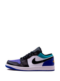 Air Jordan 1 Low "Aqua" sneakers Released in 1985, the Air Jordan 1 Low is a brand classic. This pair comes in a "Aqua" colourway and, here, the 'NIKE AIR' branding on the tongue has been replaced with Jumpman logos, while the line's Wings insignia has moved to the heel from the ankle tab. Highlights - White/multicolour - Leather - Panelled design - Branded heel counter - Signature swoosh logo detail - Signature jumpman motif - Front lace-up fastening - Perforated toebox - Round toe - Flat rubber sole - These styles are supplied by a premium and authenticated sneaker marketplace. stocking only the most sought-after footwear, they source and curate some of the most hard to find sneakers from around the world. Imported Composition Sole: Rubber 100% Outer: Leather 100% Lining: Fabric 100%
