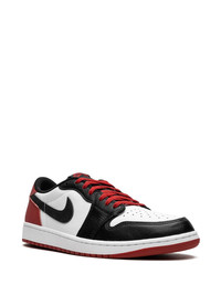Air Jordan 1 Low OG "Black Toe" sneakers The Air Jordan 1 Low OG is an update of Michael Jordan’s first signature shoe. These low-top sneakers feature a black, white and dark red colour and are detailed with a 'Wings' logo on the heel tab and a black Swoosh on the sides - a design that was not on the original Air Jordan 1 Low from 1985. Highlights - White/black/dark red - Leather - Signature air jordan wings logo - Signature swoosh logo detail - Contrasting panel detail - Round toe - Front lace-up fastening - Logo patch at the tongue - Branded insole - Flat rubber sole - These styles are supplied by a premium sneaker marketplace. stocking only the most sought-after footwear, they source and curate some of the most hard to find sneakers from around the world. Imported Composition Leather 100%