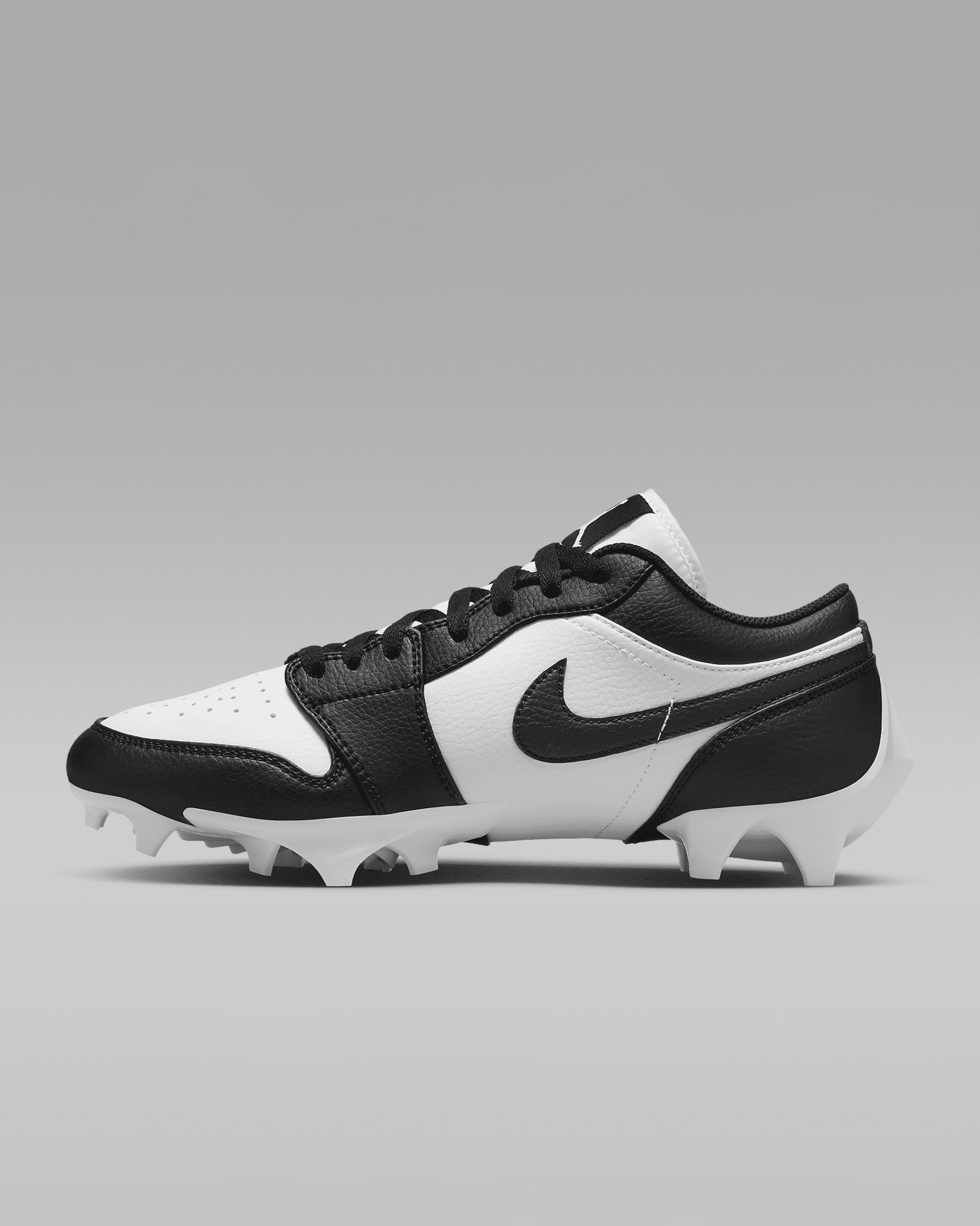 Engineered for speed, the Jordan 1 Low TD offers a new degree of agility and quickness. Its wide stud placements help you cut faster than ever before. External pods deliver optimal traction for quick cuts. And the durable design is backed by synthetic leather details in the upper that help resist abrasion. Benefits - Upper takes the best parts of the AJ1 and reimagines the silhouette for football. - Wide stud placement helps you make quick cuts on the field. Product Details - Shown: White/Black/Black - Style: FJ6245-100