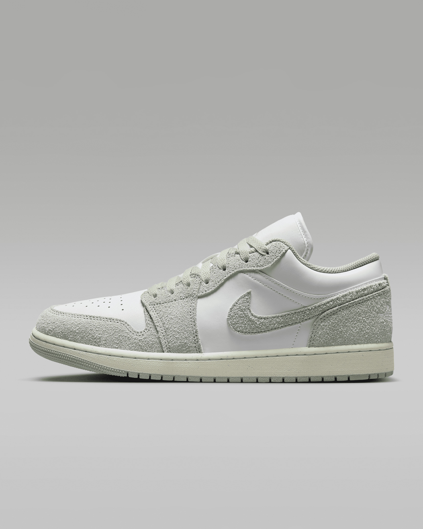 New colors and fresh textures give you an updated AJ1 without losing its iconic silhouette and familiar feel. Made from premium materials, this all-time favorite comes decked out with comfortable Nike Air cushioning and subtle design details (check out that embroidered heel) to give you a staple sneaker with a modern look. Benefits - Real and synthetic leather in the upper offers durability and structure. - Encapsulated Nike Air unit provides lightweight cushioning. - Rubber in the outsole helps give you durable traction that's ideal for everyday wear. Product Details - Perforations on toe - Wings logo on heel - Embroidered Jumpman on tongue - Shown: White/Sail/Seafoam - Style: FN5214-131