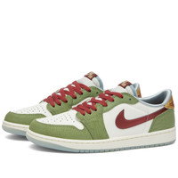 2024 is the year of the dragon, so Air Jordan jumped at the chance to create a Chinese New Year 1 Retro Low sneaker design - decked out in an array of culturally significant colours. Green-textured overlays nod to the Chinese Zodiac's only mythological creature, while a bright white base gives them a fresh feel, complemented by hits of red throughout. The wing emblem sits proudly on the heel, along with the signature Swoosh across the sidewalls. Elsewhere, a satin collar brings a premium touch to the celebration, accompanied by a Jumpman charm for good luck. - Leather Upper - Satin Collar - Rubber Outsole - Style Code: FN3727-100