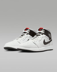 Inspired by the original AJ1, this mid-top edition maintains the iconic look you love while choice colors and crisp leather give it a distinct identity. Benefits - Leather, synthetic leather and textile upper for a supportive feel. - Foam midsole and Nike Air cushioning provide lightweight comfort. - Rubber outsole with pivot circle gives you durable traction. Product Details - Shown: Summit White/Neutral Grey/Infrared 23/Black - Style: DQ8426-109