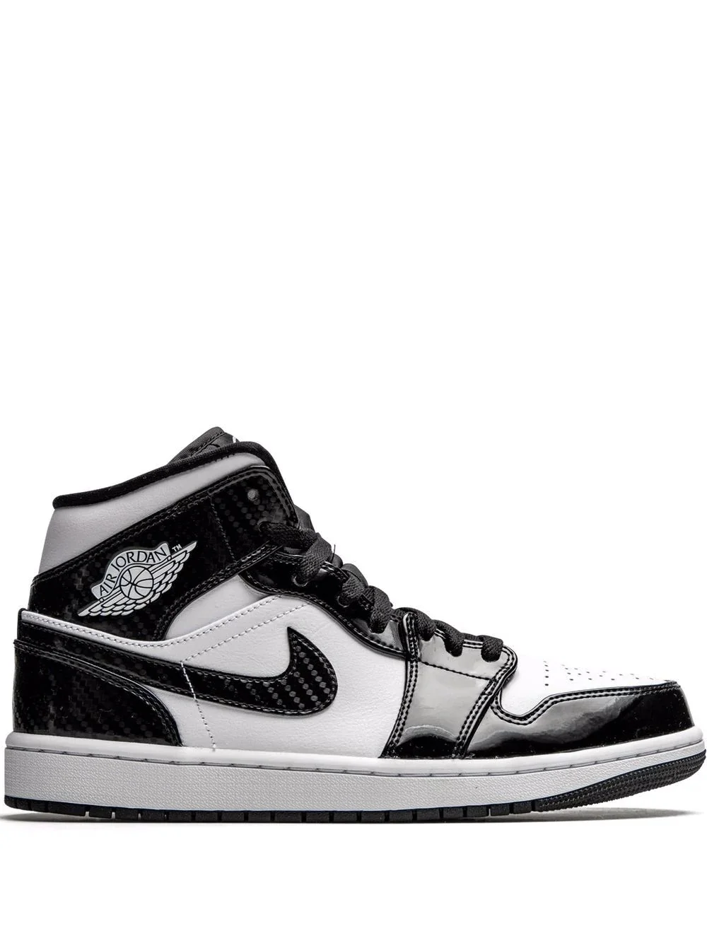 Air Jordan 1 Mid "All-Star 2021" sneakers You can't go wrong with a pair of Jordan sneakers. Crafted from black and white leather, these Air Jordan 1 Mid SE sneakers are a timeless high-top silhouette with added flair. Easy as that. Highlights - Black/white - Leather/rubber - Signature swoosh logo detail - Contrasting panel detail - Round toe - Front lace-up fastening - Logo patch at the tongue - Ankle-length - Flat rubber sole - These styles are supplied by a premium sneaker marketplace. stocking only the most sought-after footwear, they source and curate some of the most hard to find sneakers from around the world. Imported Composition Leather 100%