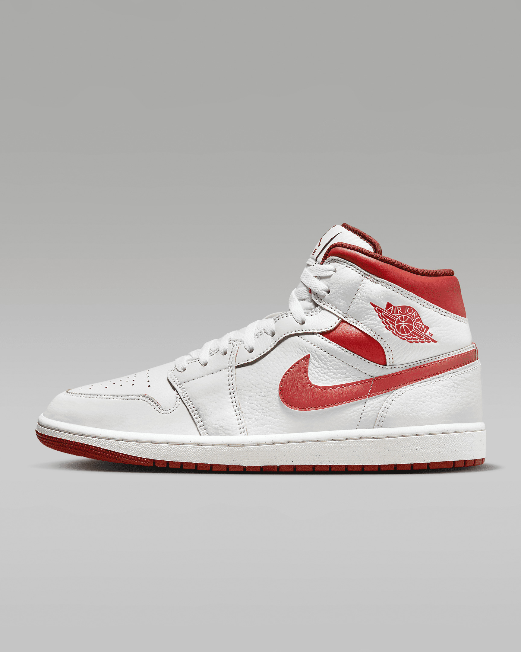 You know they're crisp, clean and cutting but how are you gonna pair these AJ1s? They're made of leather and textiles in the upper and have that cushioned comfort Nike Air in the sole. So what's it gonna be? Benefits - Leather and textiles in the upper offers durability and structure. - Encapsulated Nike Air-Sole unit provides lightweight cushioning. - Rubber in the outsole gives you traction on various surfaces. Product Details - Wings logo stamped on collar - Stitched-down Swoosh logo - Jumpman Air design on tongue - Shown: White/Dune Red/Sail/Lobster - Style: FJ3458-160