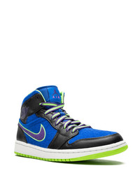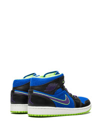 Blue leather and wool Air Jordan 1 Mid sneakers from jordan featuring a signature Nike swoosh to the side, a round toe, a lace fastening and a ridged rubber sole. Imported Composition outer: Leather 100%,Wool 100% sole: Rubber 100% lining: Polyester 100%