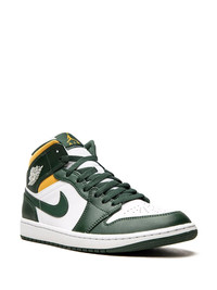 Air Jordan 1 Mid "Sonics" sneakers The “Brazil” Inspired Air Jordan 1 Mid is dressed in green, white and yellow colours. This high-top sneaker is crafted from leather and features the iconic Wings logo and Swoosh on the sides while a signature Jumpman logo appears on the tongue. Underneath, a two-toned rubber sole finishes the look with comfort. Highlights - White/green/yellow - Leather - Signature air jordan wings logo - Signature swoosh logo detail - Contrasting panel detail - Round toe - Front lace-up fastening - Logo patch at the tongue - Ankle-length - Branded insole - Rubber sole - These styles are supplied by a premium sneaker marketplace. stocking only the most sought-after footwear, they source and curate some of the most hard to find sneakers from around the world. Imported Composition Leather 100%