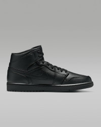 Inspired by the original AJ1, the Air Jordan 1 Mid offers fans a chance to follow in MJ's footsteps. Fresh color trims the clean, classic materials, imbuing modernity into a classic design. Benefits - An Air-Sole unit provides lightweight cushioning. - Real and synthetic leather in the upper offers durability and structure. - A solid rubber outsole gives you traction on a variety of surfaces. - Textile tongue feels soft and comfortable. - Shown: Black/Black/Black - Style: 554724-093
