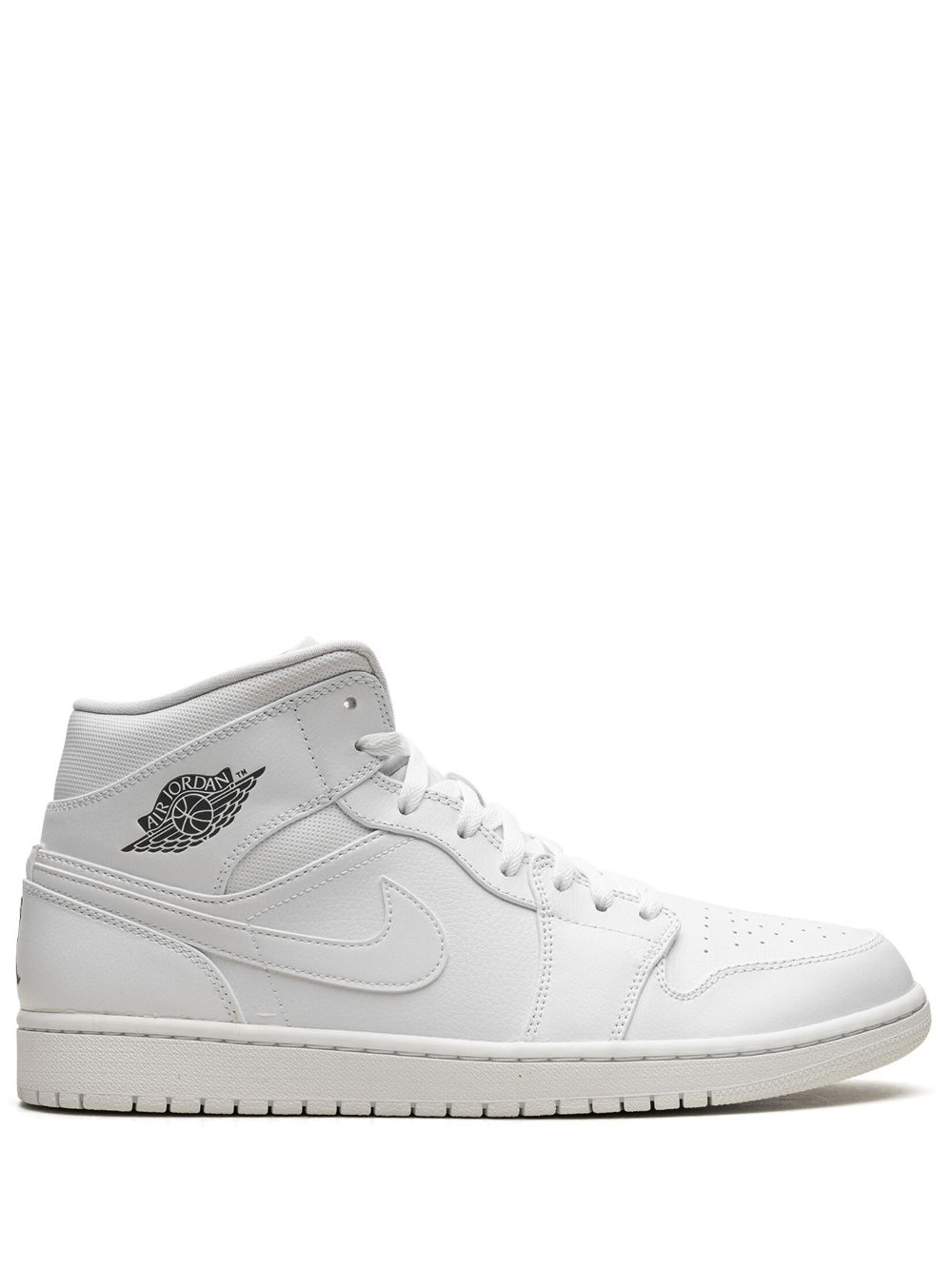 Air Jordan 1 Mid sneakers A heritage style, the Jordan 1 Mid is presented in a white colourway here. Featuring the signature Swoosh logo and a supportive ankle-length construction, this pair offers a pared-back and wearable design. Highlights - White - Leather - Signature swoosh logo detail - Signature air jordan wings logo - Round toe - Front lace-up fastening - Logo patch at the tongue - Branded insole - Rubber sole - These styles are supplied by a premium sneaker marketplace. stocking only the most sought-after footwear, they source and curate some of the most hard to find sneakers from around the world. Imported Composition Outer: Leather 100% Sole: Rubber 100% Lining: Fabric 100%
