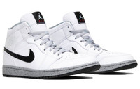 PRODUCT INFORMATION Model No: 554724-115 Closure: Lacing Release Date: 2018-06-16 Upper Material: Leather Thickness: Regular Sole Style: Sports Colorway: White/Black-Wolf Grey Toe Type: Round Toe Upper: Mid top Sole Material: Rubber Sole Functionality: Slip-resistant/Lightweight Season: All Season Color: white Series: Air Jordan 1 Sub Series: Air Jordan 1 Mid Nickname: White Cement Occasion: lifestyle