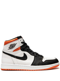 Air Jordan 1 Retro High OG "Electro Orange" sneakers The Air Jordan 1 is inspired by the first AJ1, bringing the fans of Jordan retros a chance to follow in the footsteps of greatness. With a multicolour design, this pair comes with a full-white colourway and is detailed with a black Swoosh logo on the sides and orange accents all over. Highlights - White/orange/black - Leather - Signature air jordan wings logo - Signature swoosh logo detail - Contrasting panel detail - Round toe - Perforated detailing - Front lace-up fastening - Ankle-length - Branded insole - Rubber sole - Release date: july 17th, 2021 - These styles are supplied by a premium sneaker marketplace. stocking only the most sought-after footwear, they source and curate some of the most hard to find sneakers from around the world. Imported Composition Leather 100%