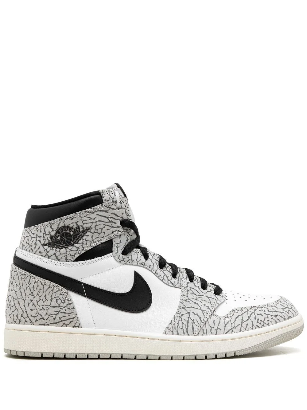 Air Jordan 1 High OG "White Cement" sneakers The Nike Air Jordan 1 High OG "White Cement" sneakers pay homage to Tinker Hatfield’s iconic print that originated on the Air Jordan 3. This model features a high-top silhouette, made from leather - in black, grey and white shades - and sits atop a rubber outsole. Imported Composition Leather 100%
