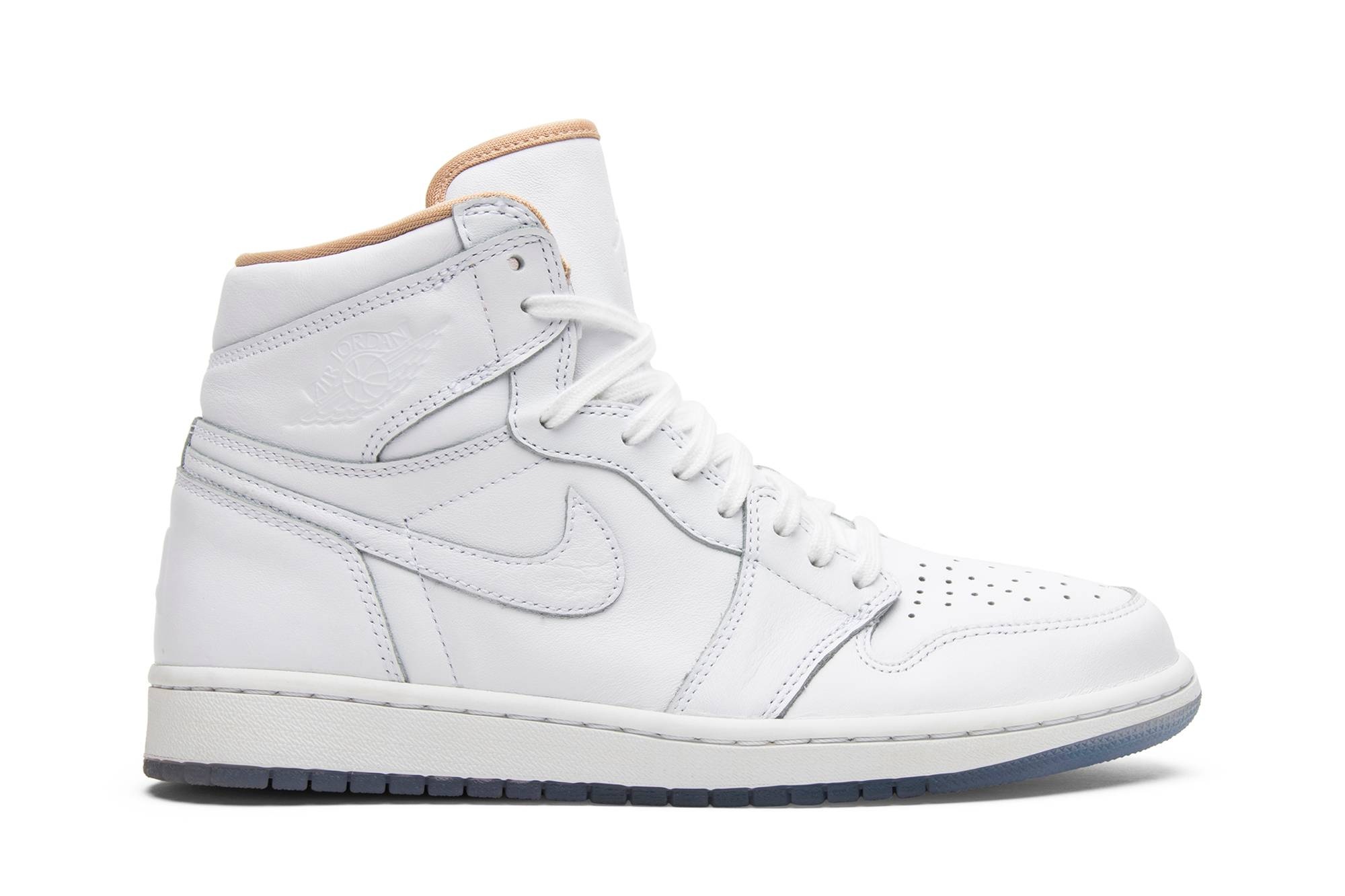 The Nike Air Jordan 1 Retro High 'Los Angeles' combines a white premium leather upper with a beige inner lining and stitching. The design also includes an ice blue translucent outsole featuring 'Los Angeles' branding over a map of the city. An LA-exclusive, the sneaker dropped in November 2015 at the Flight 23 location in Santa Monica's Footaction. UPPER MATERIAL Leather